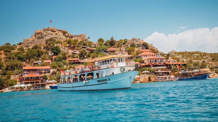 There are three entrances to the bay: the west passage coming from the direction of Kaş, between Kisneli Island and the mainland; the middle passage between Kisneli and Aşırlı Island; and the east passage coming from the direction of Demre, between the Aşırlı Island and the mainland.